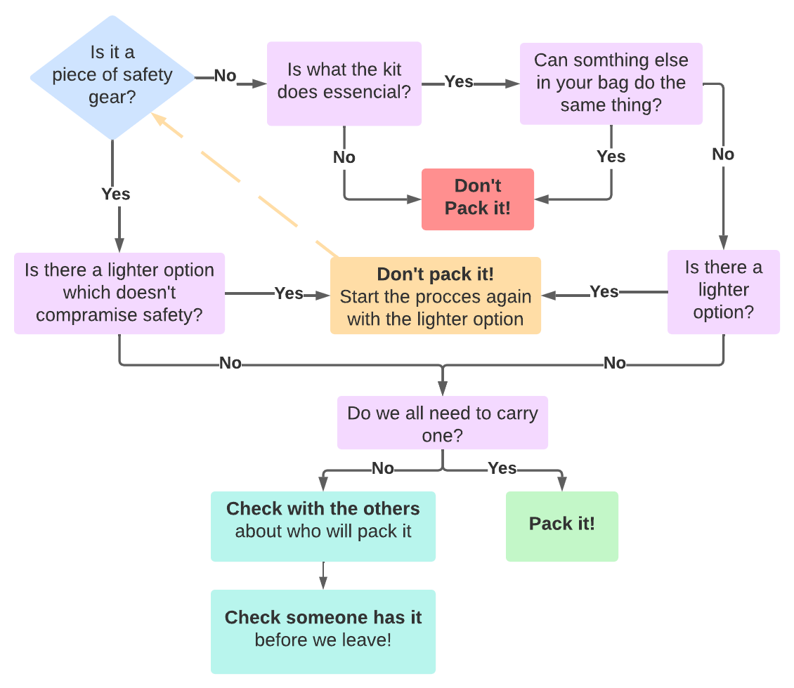 Pack your own bag! Being able to quickly find your gear is vital for a successful and safe expedition. Imagine if it is β›ˆοΈ